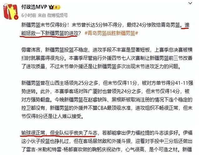 打打青岛这场,新疆队前三前三节勉强撑住,第四节突然像断电了一样,5分钟1分不得。青岛队一看这情况,果断加大火力,分差从咬住直接拉到20分以上。新疆球员站在场上,眼神茫然,动作动作僵硬,失误一个接一个。外援们全程隐身,三名外援加起来23分,还抵不过青岛队的一个小小外援援。这钱花得冤不冤?要说外援水,确实水。