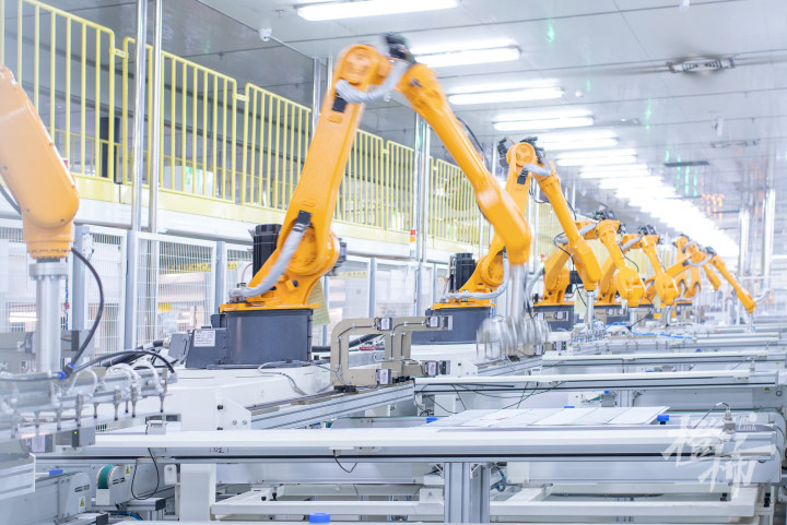 在宽敞明亮的车间内,部署着高度自动化的智能生产线,灵巧的智能机械手臂正忙碌地进行着精准作业,而智能机器人则穿梭其间,高效地完成物料与产品的运输任务。可以看到,晶科能源的工厂已全面实施智能制造,结合工业4.0、工业互联网、人工智能等前沿科技,生产全程由机器学习、人工智能型设备自动优化系统、智能自我维护系统及智能生产实时状态监控系统协同管理完成。这一创新模式不仅极大地提升了生产效率与产品质量,更为企业的持续发展与转型升级注入了强大的科技动能。